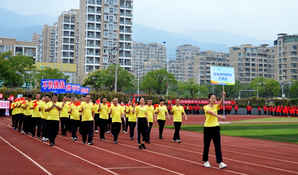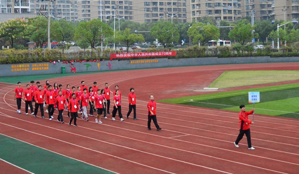 上午7:30,開幕式正式開始,今年是新中國成立70周年,麗汽員工著“中國紅”運(yùn)動服,個個精神抖擻、神采飛揚(yáng)。由麗汽集團(tuán)員工組成國旗、司旗、會旗、會徽方隊(duì)和9支代表隊(duì)、1支裁判員代表隊(duì)依次通過主席臺檢閱。