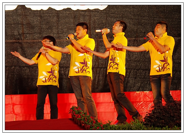 晚會(huì)在大合唱《咱們工人有力量》歌聲中拉開帷幕,麗汽集團(tuán)各二級(jí)單位組織的12支演唱隊(duì)伍依次上臺(tái),分別參加大合唱組和小組唱組的比賽??炜凸具x送的《天路》、南明賓館選送的《打起手鼓唱起歌》分別獲得大合唱組和小組唱組的一等獎(jiǎng)客運(yùn)西站選送的《團(tuán)結(jié)就是力量》、集團(tuán)公司機(jī)關(guān)選送的《我和我的祖國》分別獲得大合唱組和小組唱組的二等獎(jiǎng)。