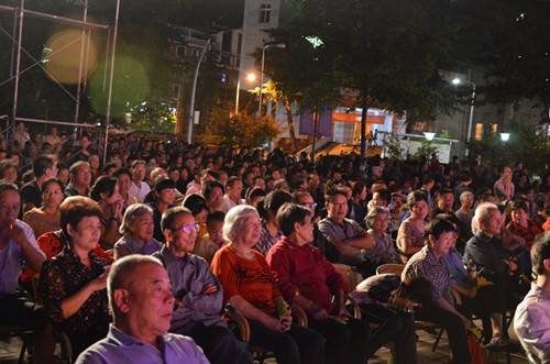 臺(tái)下的離退休老同志們?cè)陴堄信d趣地觀看演出