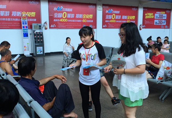7月2日上午,麗水學(xué)院志愿者在客運東站候車廳進行防治艾滋病的宣傳工作。為了把工作做的扎實有效,讓更多的人了解艾滋病的傳播途徑和預(yù)防艾滋病的重要性,志愿者們向正在等車的旅客贈送清涼扇和宣傳資料,扇子上印有預(yù)防艾滋病相關(guān)知識,既給旅客送去清涼,又達到了宣傳預(yù)防艾滋病的目的。