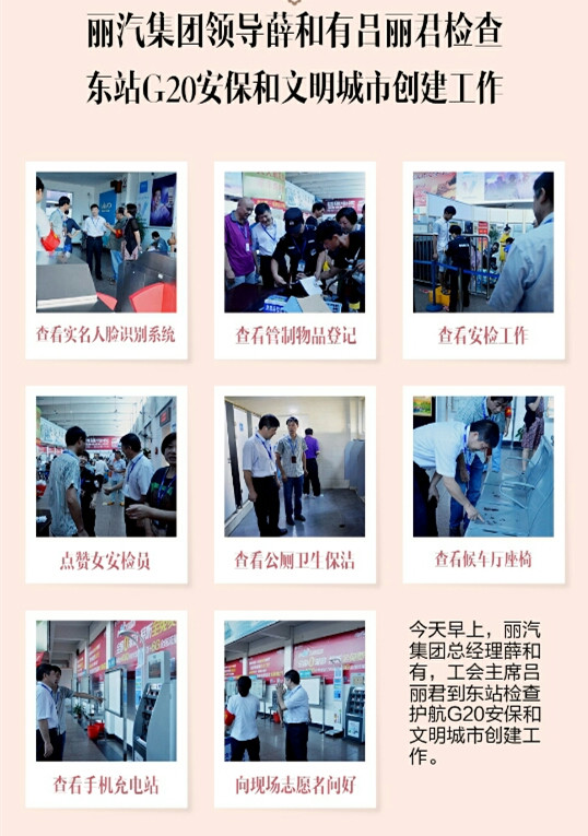 今天上午,麗汽集團總經(jīng)理薛和有、工會主席呂麗君到東站檢查護航G20 安保和文明城市創(chuàng)建工作。