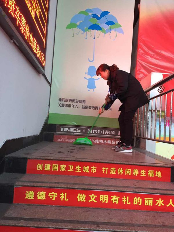 12月10日8:30,東站黨員志愿者在黨支部書記江小華的帶領下分別對站內(nèi)的墻面進行刷白和衛(wèi)生死角的清掃。