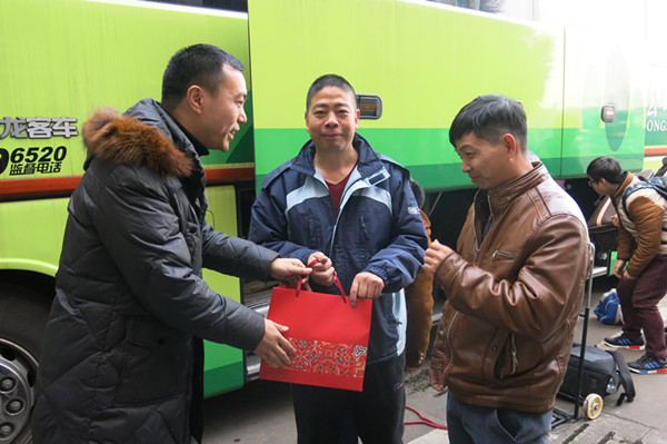 旅游集散中心領(lǐng)導(dǎo)走到每一位參與春運(yùn)加班和民工返鄉(xiāng)包車(chē)的駕駛員身邊,送上慰問(wèn)品,并叮囑駕駛員路途注意安全,在駕車(chē)時(shí)必須控制好車(chē)速,特別是在駛經(jīng)彎道、坡路、橋梁、窄路和視線不良、交通流量大的路段或遇到下雨、下雪、大霧等惡劣天氣時(shí),更要按照限速規(guī)定嚴(yán)格控制車(chē)速,避免發(fā)生交通事故;并做好保暖工作,搭班駕駛員互相照應(yīng),不能疲勞駕駛,注意自身健康。