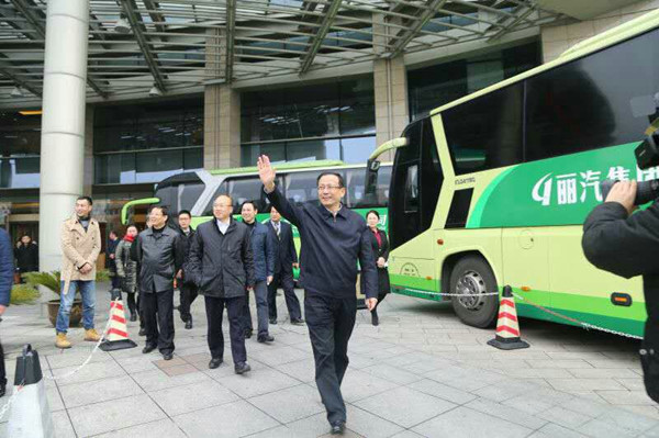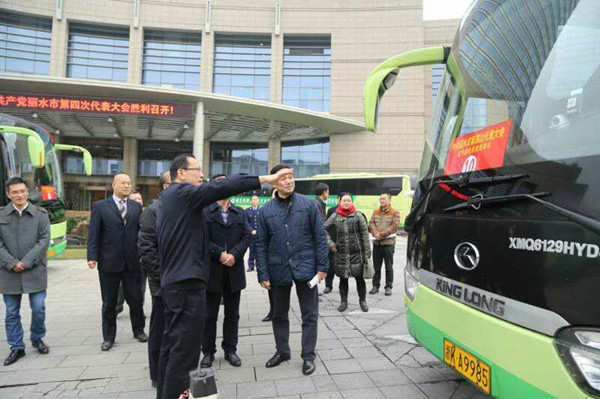 當(dāng)看到所有車輛都是統(tǒng)一的淺綠色,象征“綠水青山就是金山銀山”,每輛車前醒目的位置都放置著統(tǒng)一規(guī)格的黨代會(huì)制定用車紅牌子,車容整潔;所有駕駛員都統(tǒng)一穿著麗汽集團(tuán)司服,司乘人員精神飽滿時(shí),史書記大加贊賞,對(duì)車輛的準(zhǔn)備工作非常滿意。并走進(jìn)車?yán)铮退緳C(jī)師傅們進(jìn)行了親切的交談,勉勵(lì)大家認(rèn)真細(xì)致為本次黨代會(huì)用車做好服務(wù)工作。