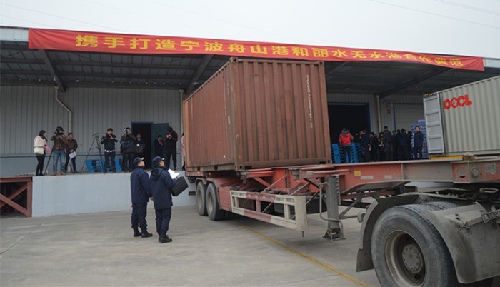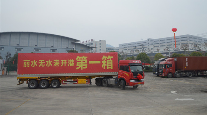 現(xiàn)場發(fā)出了麗水無水港開港第一箱