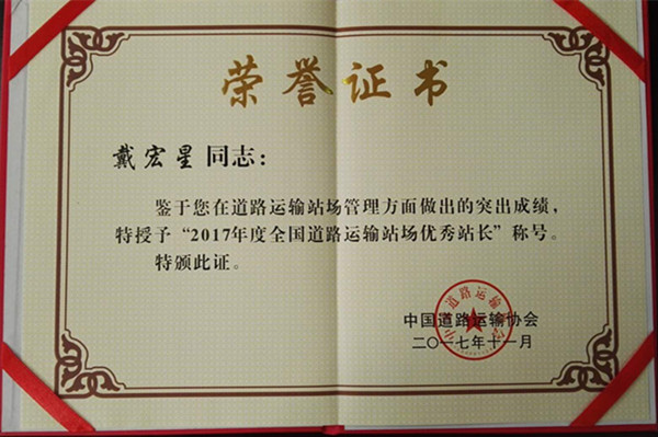 在中國(guó)道路運(yùn)輸協(xié)會(huì)、中國(guó)海員建設(shè)工會(huì)全國(guó)委員會(huì)舉辦的 “2017年度全國(guó)道路運(yùn)輸安全行車(chē)百萬(wàn)公里駕駛員勞動(dòng)競(jìng)賽活動(dòng)”中,長(zhǎng)運(yùn)分公司陳麗義獲全國(guó)優(yōu)秀駕駛員;客運(yùn)東站戴宏星獲全國(guó)優(yōu)秀站場(chǎng)長(zhǎng)。