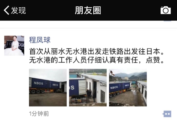 “首次從麗水無水港出發(fā)走鐵路出發(fā)往日本,無水港的工作人員仔細認真有責(zé)任,點贊?!边@是麗水春子農(nóng)業(yè)裝箱后老板發(fā)在朋友圈上的。大家都表示能得到客戶的認可和信賴是對我們工作最大的肯定,再苦再累都值得。