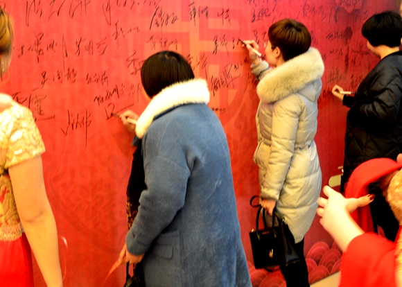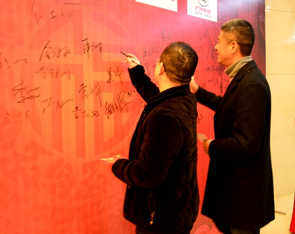 簽名墻前,麗汽集團領(lǐng)導(dǎo)、到會嘉賓紛紛簽名留念,相談甚歡!字里行間,書寫了對汽車4S店員工一年來的肯定贊許,笑語聲中,也充滿對新一年的期盼和祝愿!
