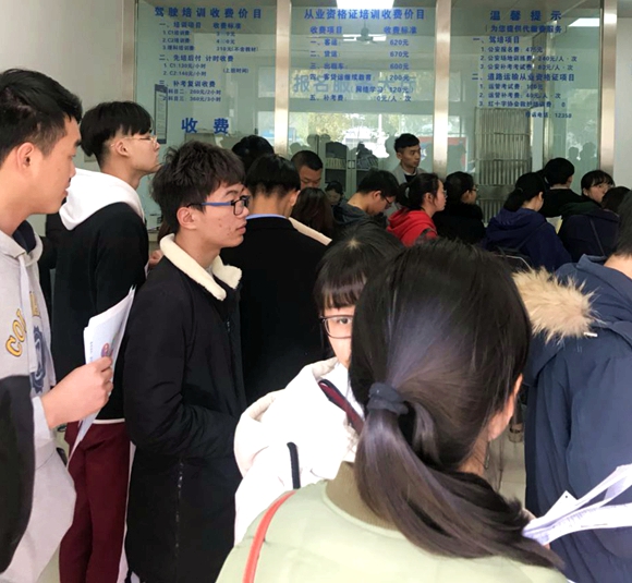 3月3日,高校開學(xué)首日,前來報(bào)名的人數(shù)就達(dá)到了80人。面對高校學(xué)生爭相報(bào)名的火熱場面,汽校馬上啟動預(yù)案,聯(lián)系大巴車負(fù)責(zé)兩高校報(bào)名學(xué)生的集中接送。所有工作人員也放棄午休時(shí)間,加班加點(diǎn)為學(xué)員們辦理報(bào)名手續(xù)。學(xué)校為確保學(xué)生報(bào)名注冊工作順利進(jìn)行,還安排專人對每一個(gè)報(bào)名學(xué)員進(jìn)行全程陪同。報(bào)名服務(wù)中心的工作人員從8點(diǎn)上班一直忙到傍晚18:30才完成當(dāng)天的報(bào)名注冊工作。