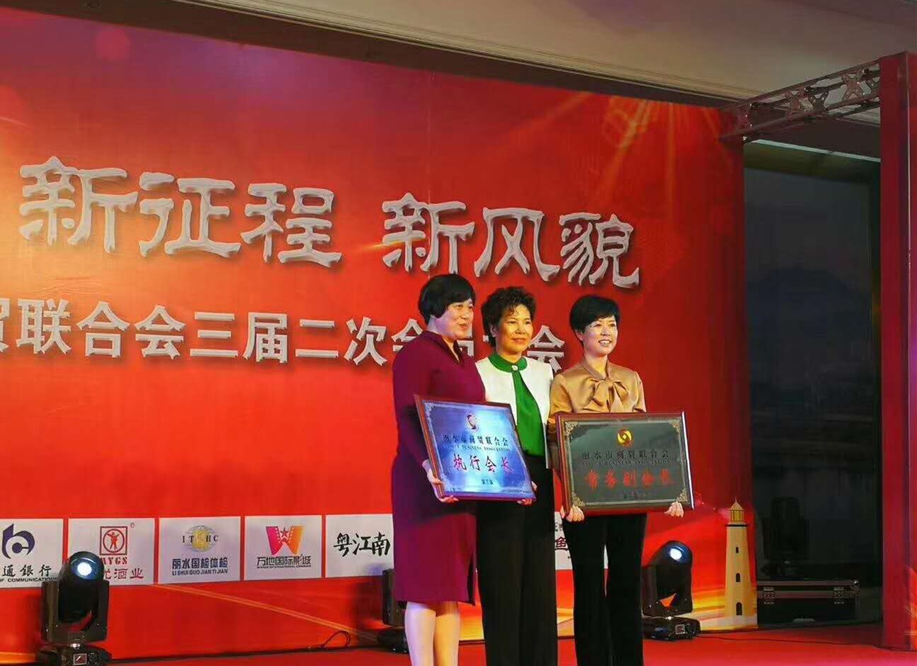 3月30日,市商貿(mào)聯(lián)合會三屆二次會員大會在麗水九城宴會中心隆重舉行。 集團(tuán)公司工會主席呂麗君當(dāng)選市商貿(mào)聯(lián)合會第三屆執(zhí)行會長,麗水市市委常務(wù)、統(tǒng)戰(zhàn)部部長任淑女授牌。