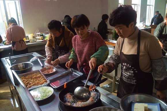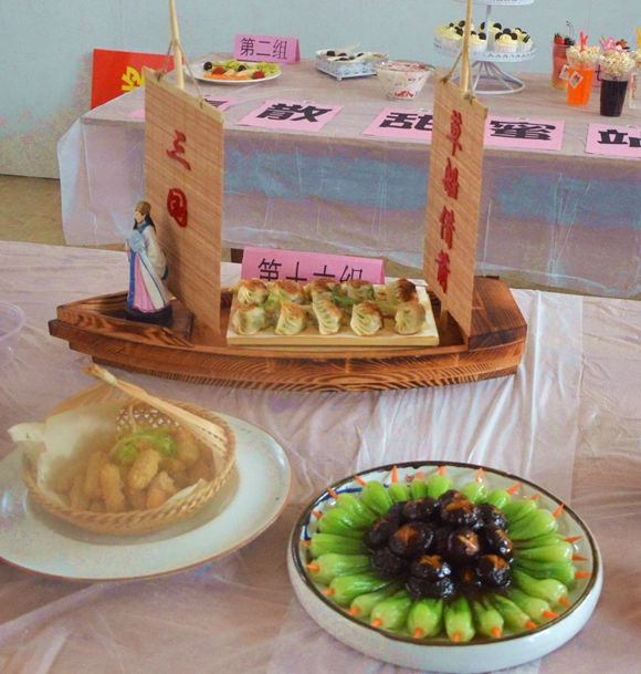 女同胞們有的揉面有的搓團(tuán)兒,有的掂勺有的擺盤(pán),有的擺弄雕花,還有穿起了糖葫蘆串兒,為了團(tuán)隊(duì)的榮譽(yù),個(gè)個(gè)擼起?子加油干!