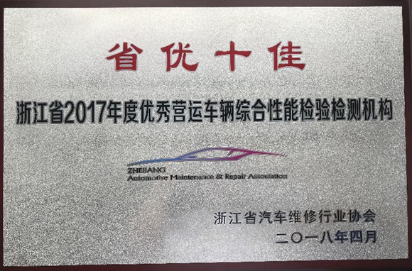 暨浙江省2017年度優(yōu)秀營(yíng)運(yùn)車輛綜合性能檢驗(yàn)檢測(cè)機(jī)構(gòu)