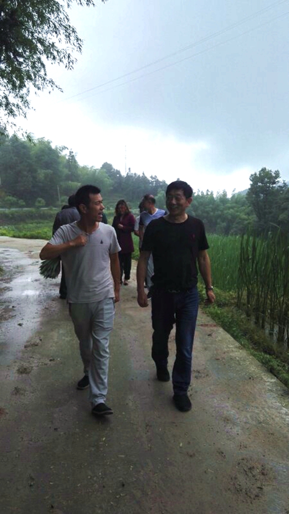 為能更好地實地考察巖背村的地理環(huán)境,在集團公司黨委委員、常務(wù)副總經(jīng)理何赤詮帶領(lǐng)下,安檢站黨支部書記、支部委員等一行4人從巖下村沿“巖前嶺”古道、經(jīng)百丈巖,步行到巖背村,受到了村兩委班子和村民們的熱情接待。