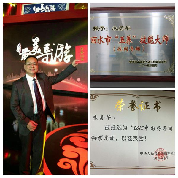 2011年,麗水市旅游局舉辦了首屆金牌導游大賽,旅游集散中心推薦朱勇華參加,大賽與平時帶團講解是不一樣的,面對年輕靚麗、舞臺表現(xiàn)能力強、記憶力好的年輕對手,年過半百的他毫不示弱,朱勇華以其深厚歷史文化底子,精益求精的戲曲才藝表演,生動又有獨到見解的講解,勇奪麗水市首屆“金牌導游”榮譽稱號。