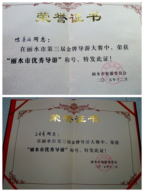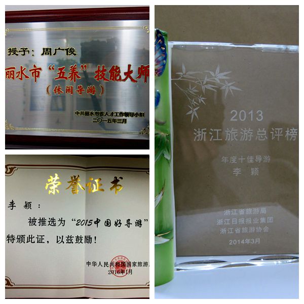 旅游集散中心成為導游成長的福地,近年來,涌現(xiàn)出了大批優(yōu)秀導游,朱勇華曾先后兩次獲得“麗水市金牌導游”稱號,2015年度獲全國最美導游入圍獎,麗水首批“五養(yǎng)”技能大師,并被麗水職業(yè)技術學院旅游專業(yè)聘為兼職講師、被麗水學院旅游專業(yè)聘為校外輔導師;周廣俊入選國家旅游與文化部“萬名旅游英才”金牌導游培養(yǎng)項目人員,全國高級導游,麗水首批“五養(yǎng)”技能大師;李穎被推選為2015年中國好導游,被授予2013年度浙江省十佳導游;陳岳麗、馬秀秀被評為“麗水市優(yōu)秀導游”。