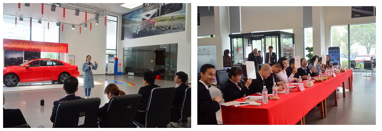 本次汽車銷售和售后接待項目特邀請了麗水職業(yè)技術(shù)學院機電分院楊俐和張丹華兩位老師擔任評委。賽后,楊俐老師對整個比賽過程和選手的賽況作了精彩而到位的點評。另外,兩個項目另設了10分觀眾分,從6家4S店中選取10名觀眾評委,對選手的表現(xiàn)情況進行現(xiàn)場亮分。