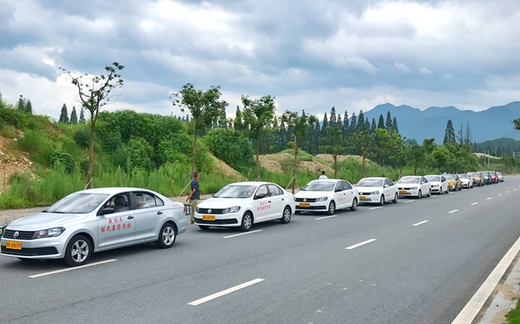 上午9點,30多名學員輪流駕駛麗汽汽校教練車,從汽校出發(fā),列著整齊的車隊,浩浩蕩蕩,途經(jīng)222省道前往松陽葡萄園。一路上,隨車教練都會及時并且耐心的指導學員駕駛過程中出現(xiàn)的問題,緩解了許多學員第一次在陌生路段拉練的緊張。
