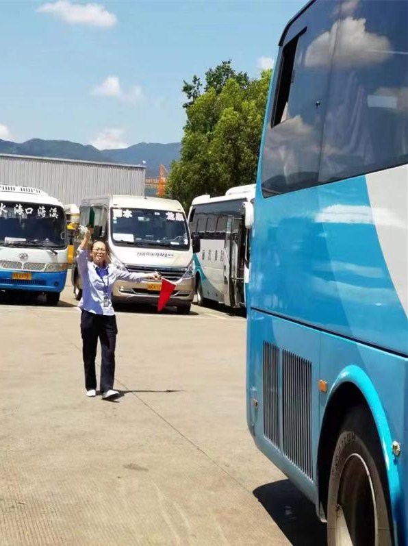 自從麗水進入高溫模式以來,客運東站的站場就像一座大熔爐。在被曬得白花花的水泥地上,只要你稍作停留,熱浪就會從腳底直往上竄,鞋底像要被熔化似的。而在客運東站,有這樣一個班組,他們每天頂著烈日,用紅綠旗指揮著一輛輛滿載旅客的車子安全出發(fā)--這就是客運東站的行車組,由13名女同志和1名男同志組成。