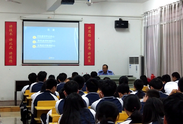 9月24日下午,學(xué)校特邀請(qǐng)蓮都區(qū)公安分局白云派出所民警曹起和對(duì)師生進(jìn)行以《遵紀(jì)守法?共筑和諧校園》為主題的法制宣傳講座。講座主要圍繞四大主題展開:守法意識(shí)牢記在心、防范意識(shí)時(shí)刻在心、反毒意識(shí)銘刻在心、反邪教意識(shí)警惕在心。
