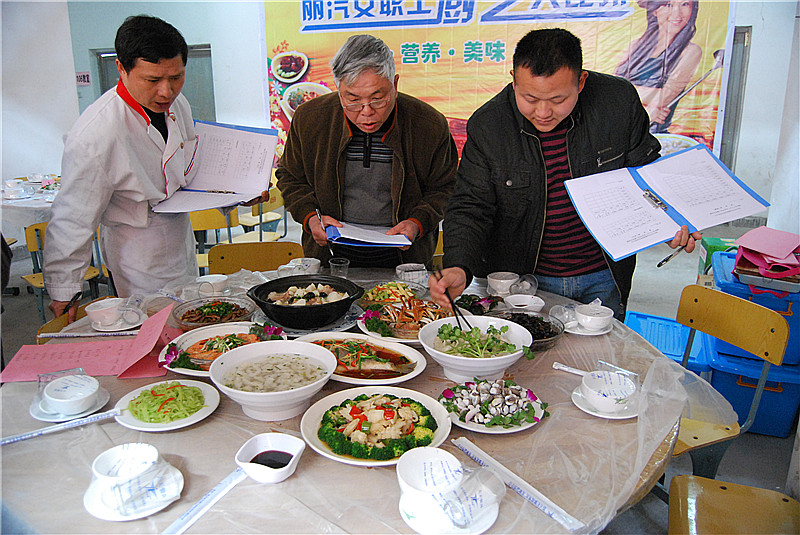 爆炒豬肝、豆腐丸子、蒜蓉大蝦……一道道誘人的家常菜端出廚房,可以看出大家伙對今天的比賽還是下了一番功夫了。由山海實(shí)訓(xùn)基地的烹飪老師組成的評委組綜合對各組燒制的菜肴的色、香、味、型,進(jìn)行打分,并對每一道菜品進(jìn)行了點(diǎn)評??炜头止?、物流公司聯(lián)隊(duì)和技術(shù)學(xué)校、南明賓館聯(lián)隊(duì)分獲一、二等獎。