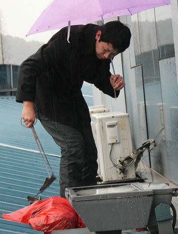 原來(lái),西站辦公大樓和售票大廳銜接的位置有一個(gè)排水溝,因售票大廳的樓層較矮,風(fēng)經(jīng)常會(huì)把周邊的落葉吹上屋頂,從而造成此處的排水溝排水不暢通。要是遇見雨天,如果不及時(shí)疏通,會(huì)導(dǎo)致積水滲漏到售票大廳。邱波是客運(yùn)西站的電工,疏通下水道本不是他份內(nèi)工作,但在他得知這一情況后,主動(dòng)承擔(dān)起了這項(xiàng)工作,每逢下雨都會(huì)上屋頂查看排水情況。昨夜今晨的這一場(chǎng)大雨,又讓邱波惦記起這事來(lái),他趕了個(gè)大早來(lái)到單位,忙完自己手頭的工作,就趕緊提著塑料袋、火鉗,打著雨傘爬到屋頂上,排水溝果然又被樹葉等雜物堵住了,邱波左手提著塑料袋,右手拿著火鉗,用脖子夾著雨傘,冒著大雨,困難的走在售票大廳濕滑傾斜的屋頂上,將水溝中的雜物一點(diǎn)一點(diǎn)夾出來(lái),經(jīng)過(guò)一番努力,水溝終于干凈了,積水也順暢的排入了下水道,此時(shí)的邱波全身上下都已經(jīng)濕透了。