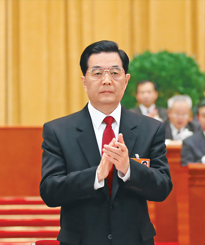 習近平表示,胡錦濤同志擔任國家主席10年間,以豐富的政治智慧、高超的領導才能、勤勉的工作精神,為堅持和發(fā)展中國特色社會主義建立了卓越的功勛,贏得了全國各族人民衷心愛戴和國際社會普遍贊譽。在習近平的提議下,全場以熱烈掌聲,向胡錦濤表示衷心的感謝和崇高的敬意。