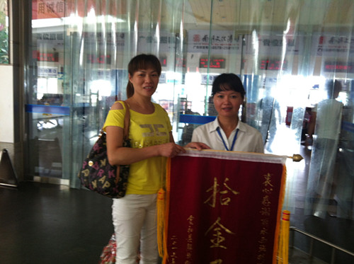 7月20日上午,客運西站值班室迎來一位特殊的客人。她執(zhí)意要找到客運西站行車員胡堅芬,將一面寫著“拾金不昧”的錦旗和一個水果籃交到胡堅芬手中,并再三表達(dá)了對胡堅芬的謝意。