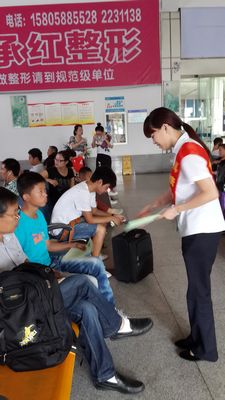 西站通過在候車廳顯著位置粘貼宣傳海報,向旅客發(fā)放“無車日”活動倡議書,對旅客進(jìn)行“無車日”活動民意調(diào)查問卷等形式,倡導(dǎo)人們綠色交通出行,節(jié)能減排,降低城市空氣污染,共同打造“秀山麗水、養(yǎng)生福地”。本次活動共張貼宣傳海報6幅,發(fā)放“無車日”活動倡議書300份,“無車日”活動民意調(diào)查問卷60多份。