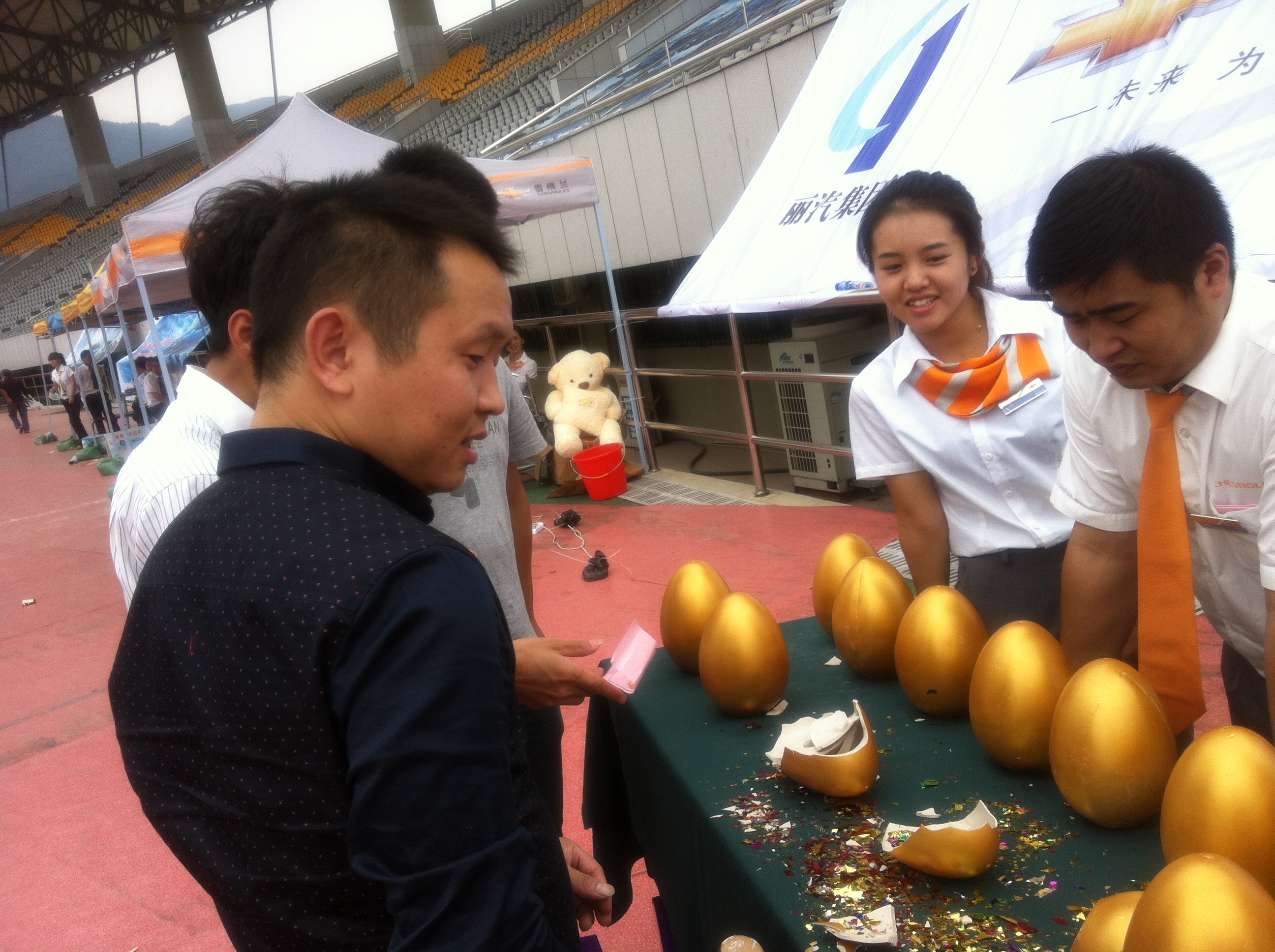 在9月26日-10月1日舉辦的“2013麗水市首屆現(xiàn)代生活博覽會--國慶汽車展”上,甌龍雪佛蘭創(chuàng)新銷售方式,以“購車砸金蛋”、舉辦新車上市會和現(xiàn)場顧客互動等活動方式吸引顧客。展銷期間現(xiàn)場訂車數(shù)達(dá)到了50輛,使9月份整車銷售實現(xiàn)了74輛的成績,環(huán)比增長了21.31%,再創(chuàng)新高。