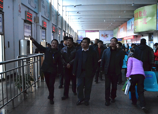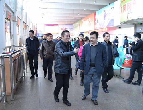 2月21日下午,麗水市市長黃志平、副市長葛學(xué)斌及市各有關(guān)單位領(lǐng)導(dǎo)在集團(tuán)公司總經(jīng)理薛和有、副總經(jīng)理廖翊堯和東站經(jīng)理梁巍的陪同下,視察了東站及周邊交通秩序和環(huán)境衛(wèi)生情況。