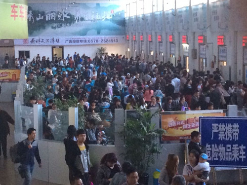 東站候車(chē)廳人頭攢動(dòng)