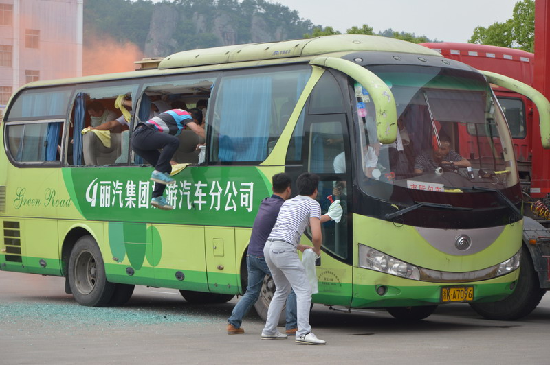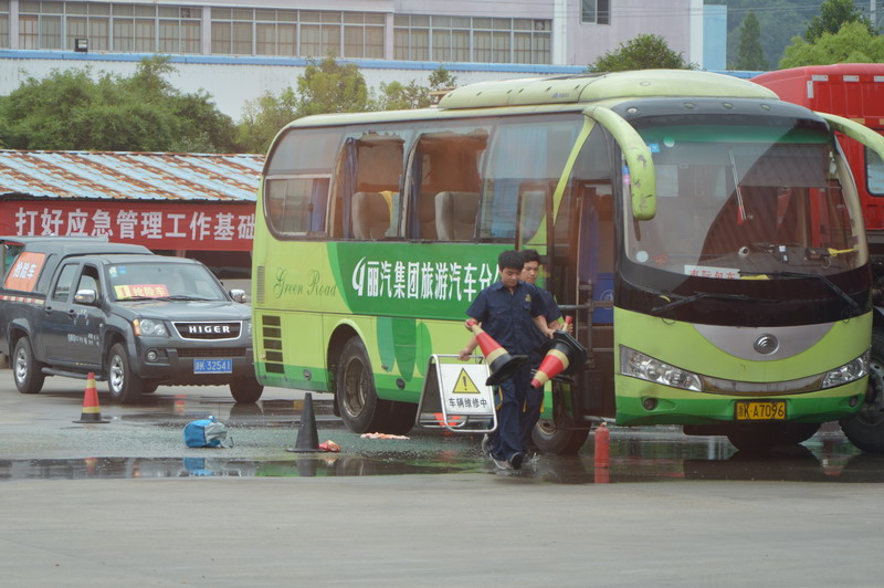為了全面落實(shí)安全生產(chǎn)責(zé)任,檢驗(yàn)評估麗水市突發(fā)事件應(yīng)急救援預(yù)案和應(yīng)急救援體系的適應(yīng)性、有效性,最大限度地減少各類突發(fā)事件的損失和負(fù)面影響,6月10日下午,麗水市交通運(yùn)輸局聯(lián)合市道路運(yùn)輸管理局和麗汽集團(tuán)在客運(yùn)西站組織開展了突發(fā)事件應(yīng)急救援演練。此次應(yīng)急救援演練共分2個科目,分別為:科目一交通事故(客車碰撞后起火燃燒)應(yīng)急處置和科目二“三防”應(yīng)急救援車輛調(diào)集演練。文首即為突發(fā)事件應(yīng)急救援演練中交通事故應(yīng)急處置中的一個場景,此次演練的另一個科目模擬市交通運(yùn)輸局緊急調(diào)用麗汽集團(tuán)應(yīng)急搶險(xiǎn)運(yùn)力展開。演練中,麗汽集團(tuán)在接到市交通運(yùn)輸局應(yīng)急搶險(xiǎn)指令后,迅速啟動了應(yīng)急預(yù)案,并立即調(diào)派各單位應(yīng)急搶險(xiǎn)車輛在規(guī)定時間內(nèi)到達(dá)指定區(qū)域待命。