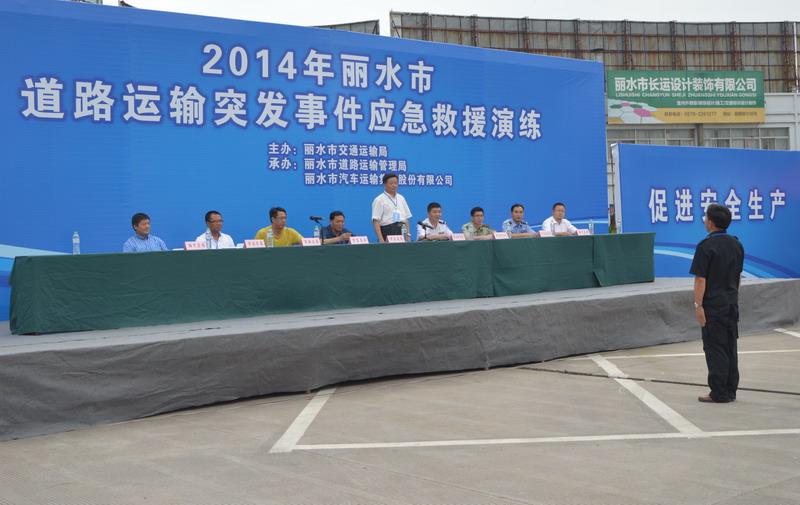 整個演練由市交通局黨組副書記、副局長李根林任總指揮,市交通局副調(diào)研員葉彪、市運(yùn)管局副局長金昌平任副總指揮,麗汽集團(tuán)常務(wù)副總經(jīng)理何赤詮任現(xiàn)場總指揮。演練共調(diào)集各類車輛近20臺,80余人參與了演練。麗水市公安局副局長、麗水市交警支隊(duì)支隊(duì)長陳志斌,麗水市政府應(yīng)急辦主任尹耀新,麗水市消防支隊(duì)副支隊(duì)長鄭志堅(jiān),麗水市安全生產(chǎn)監(jiān)督管理局應(yīng)急處處長王琦,麗水高速交警支隊(duì)副支隊(duì)長朱宏煒,麗汽集團(tuán)黨委書記、董事長葉茂,麗汽集團(tuán)總經(jīng)理薛和有等領(lǐng)導(dǎo)和麗汽集團(tuán)相關(guān)管理人員共200余人觀摩了整個演練過程。