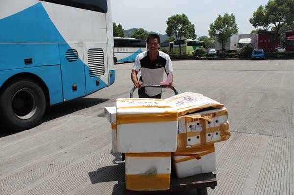 要論炎夏最辛苦的崗位,很多人自然會想到行李房的裝卸工。行包裝卸工冒著熱浪辛勤作業(yè),準時地收發(fā)一批批貨物。行包房收發(fā)的貨物很多都是大件貨物,輕的幾十斤,重的二、三百斤,一批貨物裝卸下來,裝卸工的衣服都能擰出水來。37度的高溫,平常人在太陽底下站上幾分鐘都受不了,行包裝卸工卻要負重往返在車輛和行李房之間,絕大部分時間都是在露天發(fā)車區(qū)作業(yè),其辛苦可想而知。雖然被熱浪蒸得暈暈乎乎的,他們卻一點也不敢大意。這么熱的天氣,海鮮水產(chǎn)、鮮活貨物很容易腐敗變質,一個不小心錯發(fā)誤發(fā)帶給客戶的可能不僅是時間精力的損耗,更會造成客戶直接的經(jīng)濟損失。所以即使再熱再辛苦,清點、裝卸、核對,整個流程他們絲毫沒有一點含糊!