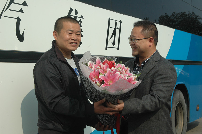 11月4日上午一上班,麗汽集團(tuán)董事長、黨委書記葉茂和工會主席呂麗君就專程來到客長運(yùn)分公司,看望慰問章雙林師傅。董事長葉茂親自給章雙林師傅遞上鮮花,贊許這位“最美司機(jī)”,稱他是麗汽集團(tuán)1500多名員工學(xué)習(xí)的榜樣。
