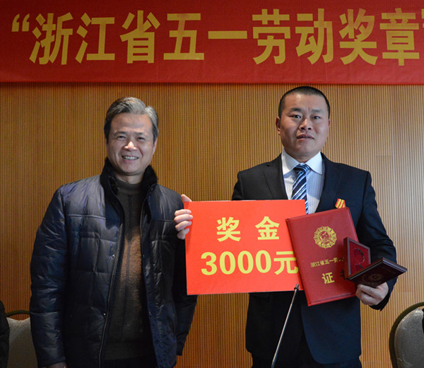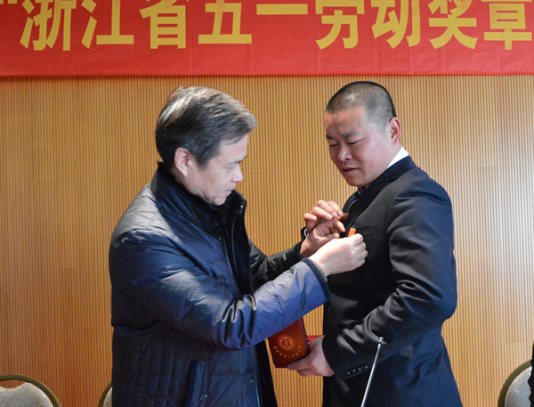 之后,市總工會黨組書記、常務副主席陳子民為章雙林頒發(fā)“浙江省五一勞動獎章”、證書和3000元獎金,并親自為章雙林佩戴了獎章。