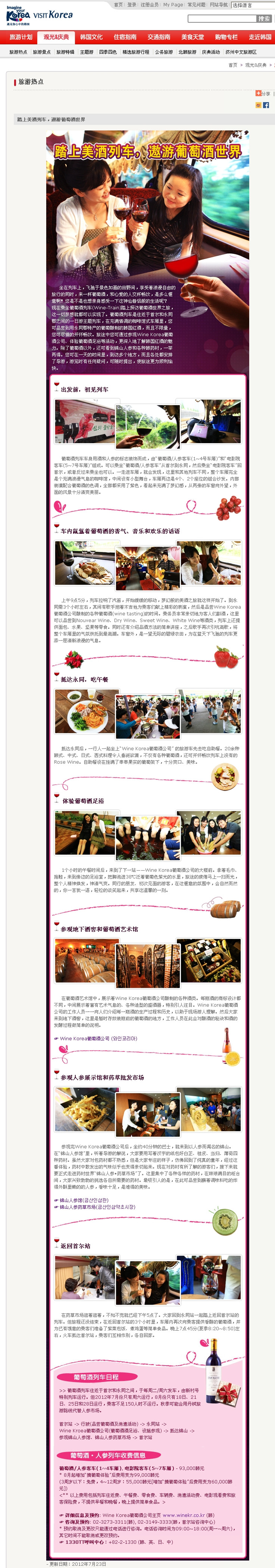據(jù)了解,韓國(guó)老式火車面臨各項(xiàng)市場(chǎng)競(jìng)爭(zhēng),經(jīng)營(yíng)慘淡,于是在2009年推出一些主題旅游列車,深受客戶歡迎,扭轉(zhuǎn)了經(jīng)營(yíng)不利局面。這些主題列車包括葡萄酒列車、人參列車、影院列車等,針對(duì)不同客戶,最大程度利用列車空間,給現(xiàn)代生活節(jié)奏緊張、時(shí)間寶貴的客戶提供休閑放松的服務(wù)。例如往返于首爾和永同郡之間的葡萄酒列車是一日游主題列車,在充滿情調(diào)的咖啡館式的車廂里,可品嘗到用永同郡特產(chǎn)的葡萄酒釀制的韓國(guó)紅酒,而且不限量盡情飲用,旅途中還可參觀葡萄酒公司、體驗(yàn)葡萄酒足浴等。據(jù)最新報(bào)道,經(jīng)營(yíng)情況相當(dāng)不錯(cuò)。