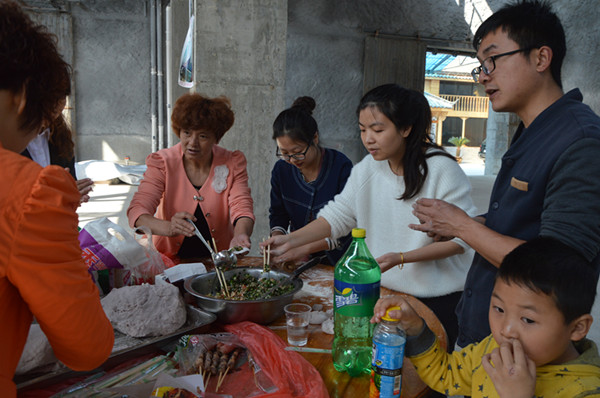 這邊包餃子的問(wèn)題正討論的激烈,那邊熱氣騰騰的豬頭也出鍋了?!把?,這么大的豬頭,小時(shí)候過(guò)年的感覺(jué)”。“對(duì)啊,對(duì)啊,這種氣氛,這種味道,太有紀(jì)念意義了”。“來(lái)來(lái)來(lái),我拍張照片,微信朋友圈曬一曬”。黃色餃子、綠色餃子、紅色餃子、紫色餃子相繼的出鍋了,燒烤的食品也相繼出爐,大家互相品評(píng),因?yàn)槎际亲约簞?dòng)手參與,一切都變成了美食。