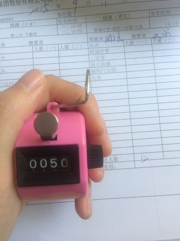 9月7日,新學期第一天,教育局會同安監(jiān)局、交通局、交警隊等主管單位在碧湖小學組織召開了校車安全管理現場會,校車分公司照管員武昭的一個小計數器讓現場各主管單位的領導和碧湖小學的老師們都露出了滿意的笑容。