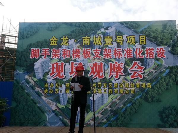 12月3日,由麗水經(jīng)濟(jì)技術(shù)開(kāi)發(fā)區(qū)建設(shè)規(guī)劃管理局主辦的建筑施工現(xiàn)場(chǎng)觀(guān)摩會(huì)在金龍?南城壹號(hào)項(xiàng)目工地現(xiàn)場(chǎng)召開(kāi)。市建設(shè)局領(lǐng)導(dǎo)、開(kāi)發(fā)區(qū)建規(guī)局領(lǐng)導(dǎo)、開(kāi)發(fā)區(qū)在建和即將開(kāi)建項(xiàng)目的建設(shè)單位、監(jiān)理單位、施工單位共100余名代表走進(jìn)項(xiàng)目現(xiàn)場(chǎng),全方位觀(guān)摩了南城壹號(hào)項(xiàng)目的安全標(biāo)準(zhǔn)化工地、項(xiàng)目精細(xì)化管理、人性化服務(wù)、特別是對(duì)腳手架和模板支架標(biāo)準(zhǔn)化搭設(shè)等內(nèi)容。