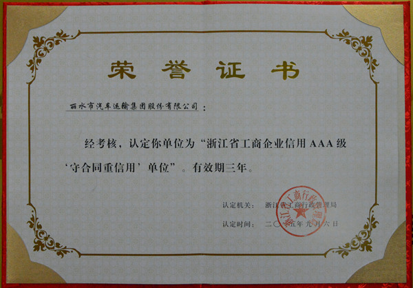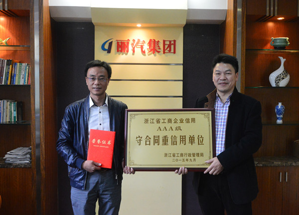 日前,麗汽集團(tuán)被認(rèn)定為浙江省工商企業(yè)信用3A級“守合同重信用”單位,有效期三年。11月13日上午,麗水市市場監(jiān)管局直屬分局監(jiān)管科科長吳乾水專程為公司送來“浙江省工商企業(yè)信用AAA級守合同重信用單位”的匾牌及榮譽(yù)證書,并對麗汽集團(tuán)守合同重信用工作表示了充分的肯定。