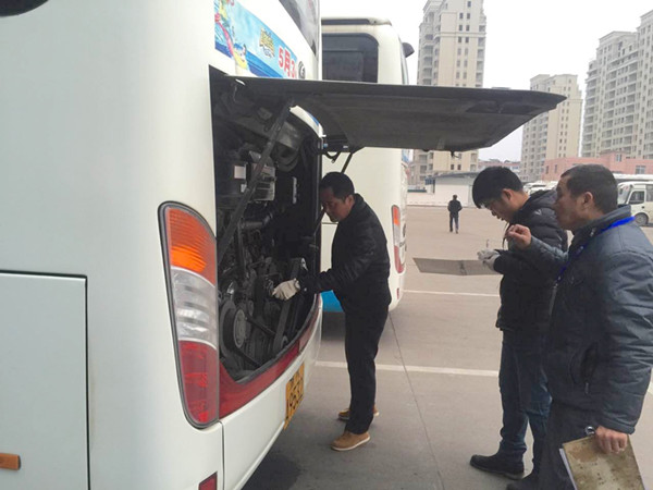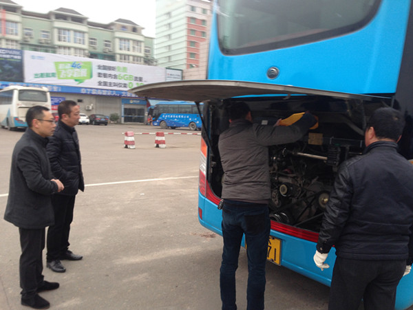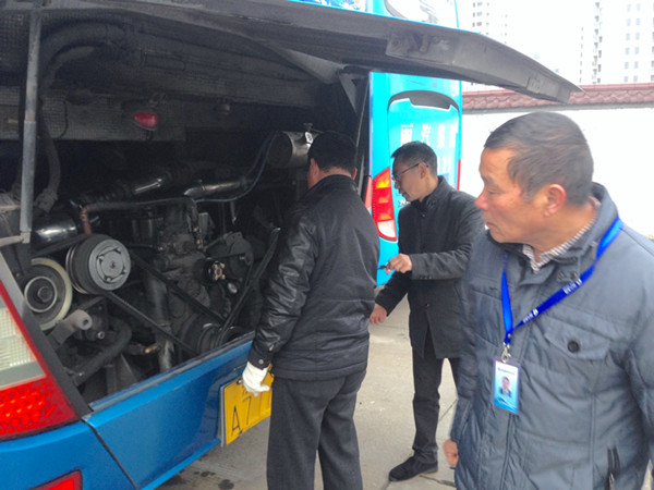 為積極響應(yīng)集團(tuán)公司關(guān)于切實做好強(qiáng)寒潮天氣安全生產(chǎn)工作,1月20日上午,長途運(yùn)輸分公司梁巍經(jīng)理、王斌副經(jīng)理組織安全稽查科、機(jī)務(wù)技術(shù)科人員,結(jié)合每月的愛車?yán)z查對單位所屬公營車輛發(fā)動機(jī)倉、電瓶、輪胎,車上的安全設(shè)施進(jìn)行防凍措施的重點檢查,要求駕駛員及時添加防凍液,對加水的車輛,要求回場后一律放凈水箱里的水,確保營運(yùn)車輛技術(shù)狀況良好。