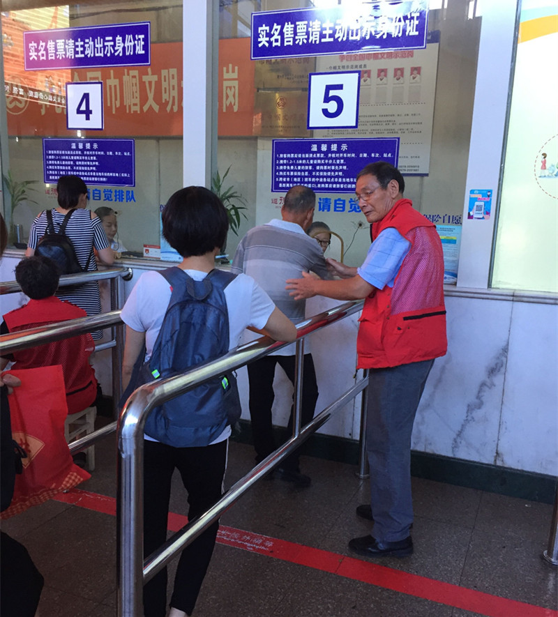 為了更好的推進(jìn)創(chuàng)全國文明城市的工作,加大對不文明現(xiàn)象的勸導(dǎo),從7月17日開始,老年大學(xué)的“紅馬夾”志愿者開始在東站志愿服務(wù),他們將對在車站內(nèi)發(fā)生的不遵守一米線排隊(duì)秩序、隨地亂扔垃圾、隨地吐痰、躺在座椅上睡覺等所有不文明現(xiàn)象進(jìn)行勸導(dǎo)。