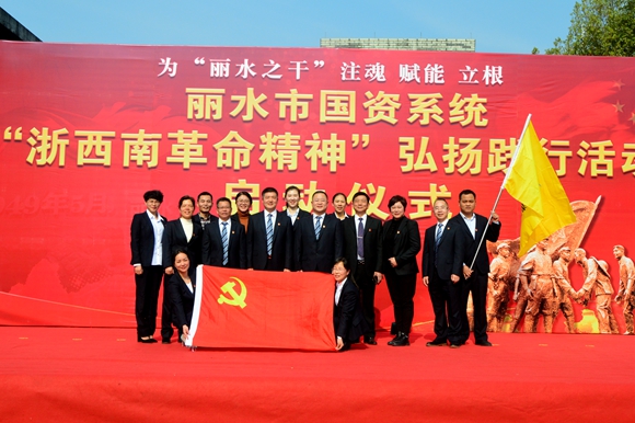 在浙西南革命根據(jù)地紀(jì)念館前,所有與會(huì)人員面對(duì)黨旗,由市國資委黨委委員、副主任高天河帶領(lǐng)大家重溫入黨誓詞。革命戰(zhàn)爭(zhēng)年代,周恩來、劉英、粟裕等老一輩革命先驅(qū)為了民族的獨(dú)立和人民的幸福,將鮮紅的熱血拋灑在浙西南大地上,締造了偉大的“浙西南革命精神”。啟動(dòng)儀式上,集團(tuán)公司雷冰帆作為職工代表在大會(huì)發(fā)言,她講到,作為職工代表要在弘揚(yáng)“浙西南革命精神”的征程上,在創(chuàng)建浙江( 麗水)綠色綜合發(fā)展改革創(chuàng)新區(qū)、打造詩畫浙江大花園最美核心區(qū)主戰(zhàn)場(chǎng)中當(dāng)先鋒、作表率。