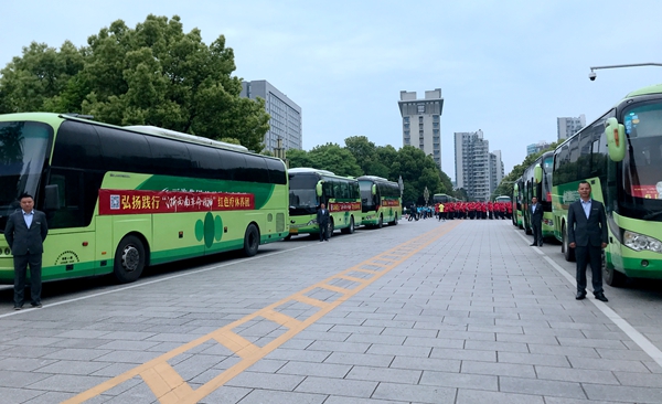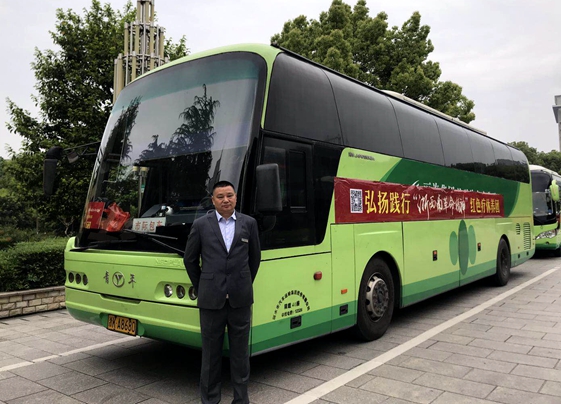 4月19日早上,在市政府南門廣場,麗汽集團旅游汽車分公司16輛綠色豪華大巴齊刷刷地排列著,16位駕駛員統(tǒng)一著裝,整齊劃一地站在車門迎候游客。這是2019年麗水市弘揚踐行“浙西南革命精神”系列活動啟動儀式暨勞模、一線(優(yōu)秀)職工紅色療休養(yǎng)活動發(fā)團儀式的現(xiàn)場。綠色大巴與著紅色服裝的先進相互映襯,形成了“紅+綠”融合發(fā)展的場景,和諧的畫面吸引了在場人員的關注,紛紛拿出手機拍場景,曬朋友圈。