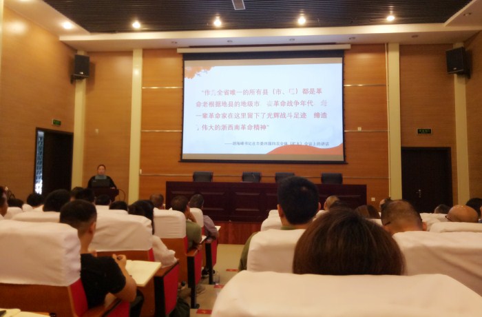 市委黨史研究室、市地方志辦公室主任雷華英從浙西南革命精神的歷史概況、內(nèi)涵和解讀、弘揚(yáng)踐行浙西南革命精神三個(gè)方面授課。在革命戰(zhàn)爭(zhēng)年代,老一輩革命家在麗水所有的縣市區(qū)都留下了光輝戰(zhàn)斗足跡,締造了偉大的“浙西南革命精神”。周恩來同志在麗水的抗戰(zhàn)史;粟裕、劉英同志帶領(lǐng)中國(guó)工農(nóng)紅軍挺進(jìn)師,與麗水人民一道浴血奮戰(zhàn),團(tuán)結(jié)一心干革命,播撒了開啟光明的寶貴革命火種。直至如今,偉大精神已深深融入麗水大地,流淌在處州兒女的血脈中,成為激勵(lì)一代又一代麗水人堅(jiān)定理想信念、戰(zhàn)勝一切困難、奪取前進(jìn)道路上一個(gè)又一個(gè)勝利的力量源泉。