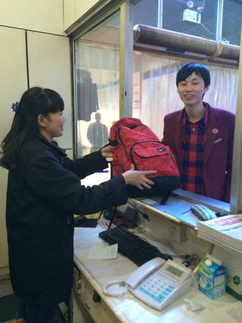 “您好,這里是客運(yùn)東站服務(wù)處,您落在車上的背包我們已經(jīng)幫您找到了,請(qǐng)您有空的時(shí)候過來取。”服務(wù) 組組員李一斌平靜中帶點(diǎn)興奮地說。
