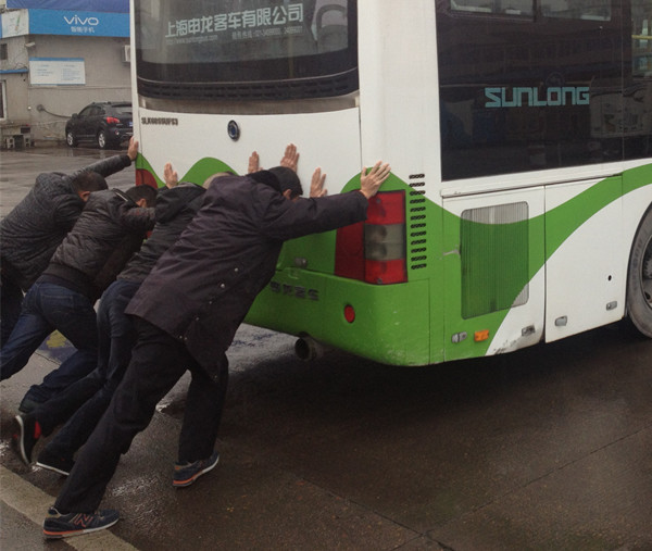 早上6時(shí)40分,開207線路的公交司機(jī)高師傅來到客運(yùn)東站站前廣場,和往常一樣,準(zhǔn)備出車。插入鑰匙,轉(zhuǎn)動啟動按鈕,之前的發(fā)動機(jī)轟鳴聲卻沒聽到,連續(xù)轉(zhuǎn)了幾次,車子還是沒反應(yīng),高師傅心里隱隱覺得肯定是出問題了。經(jīng)過檢查,發(fā)現(xiàn)是由于天氣太冷,電瓶電力不足無法啟動。他馬上打電話找來了車隊(duì)的兩名同事,一人把方向盤,兩人推車,可車子移動過于緩慢,根本不可能通過人工打火啟動。就這樣,207路的公交車停在了東站站前廣場的中央占著通道,影響了出站的交通。